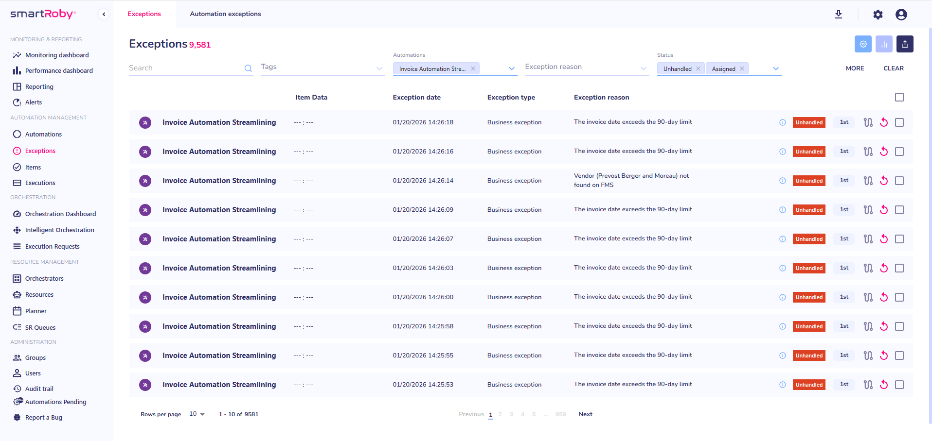 SmartRoby simplifies exception management to keep your automations running smoothly. With real-time insights and smart workflows, teams can handle exceptions quickly and improve processes over time.