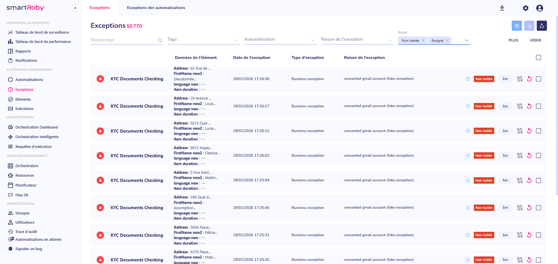 - Supervision en temps réel:Visualisez les exceptions dès qu’elles surviennent et traitez-les immédiatement.
